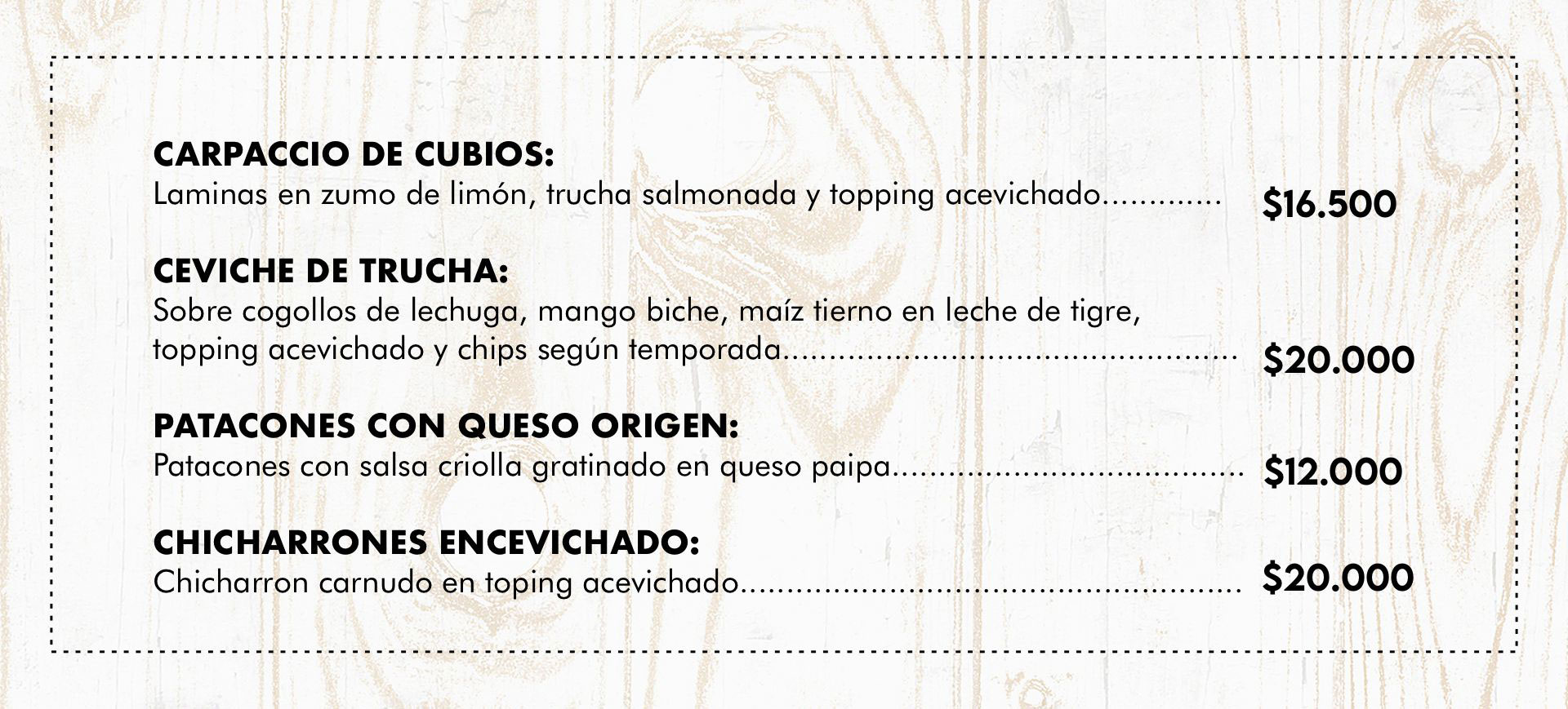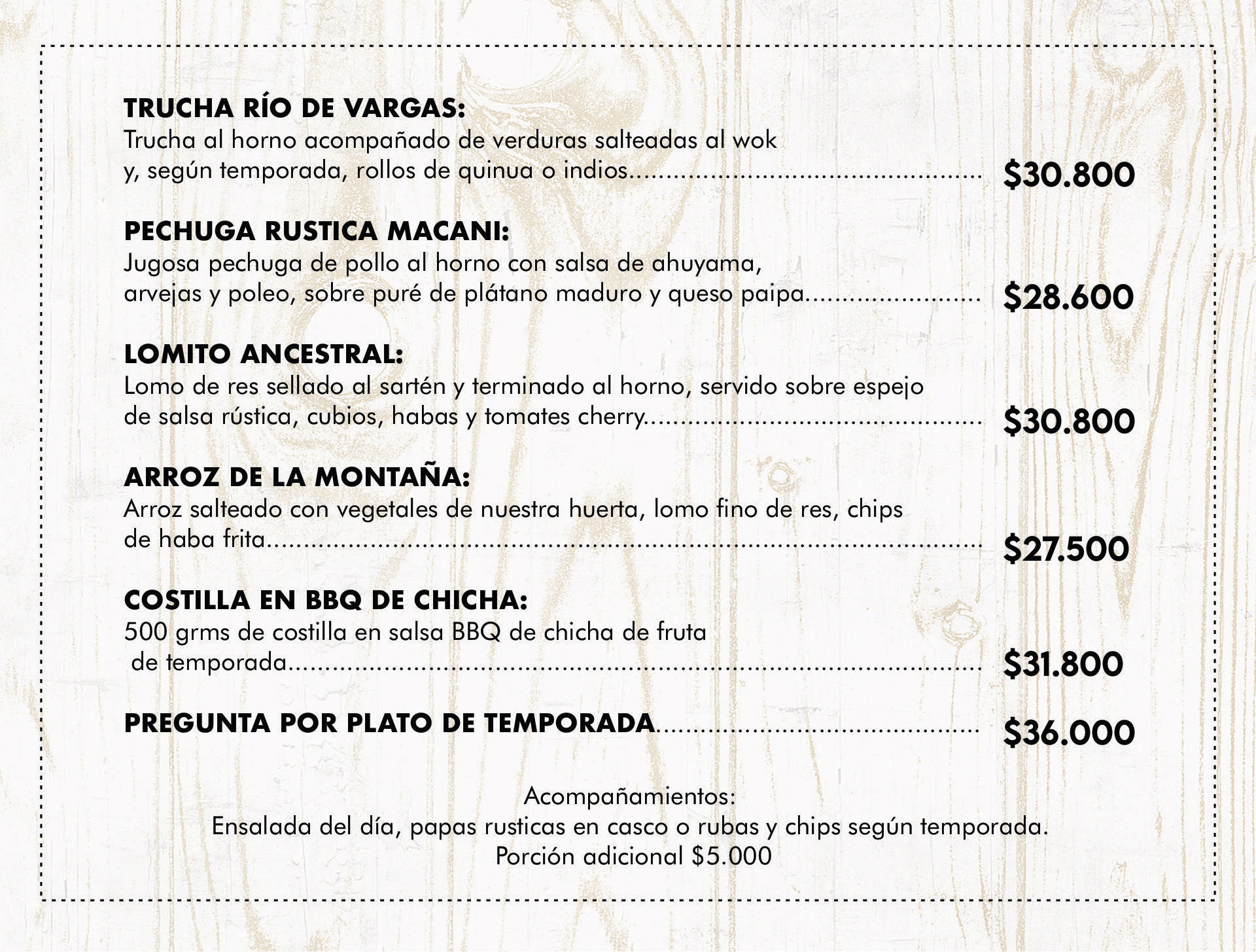 Cocina de autor. Nuestra cocina de autor está inspirada en la cultura colombiana y rescata ingredientes ancestrales. Usamos productos orgánicos, saludables y locales para apoyar a la región y generar sostenibilidad. Buscamos que el comensal descubra y valore lo fresco y natural, que sea consciente de una forma de alimentarse que nutra el cuerpo y cure el alma.